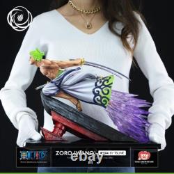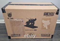 Tsume Ikigai One Piece Zoro (Wano) - Brand new in box. The first member to join the Straw Hat Pirates is also the first legendary character to inaugurate our new range of 1/6 resin statues: here is Roronoa Zoro- Wano Ikigai by Tsume! Here we find the green-haired swordsman in an ultra-dynamic pose as he leans on a Japanese Tori to assault Basil Hawkins with fatal blows in Wano Country! Gaining momentum, he is about to cut him into pieces thanks to his Nitôryû, holding firmly his two katanas Kitetsu the Third and Shusui behind, whose sharp white, blue and black blades will soon be reddened..