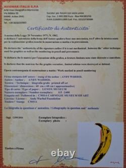 Édition limitée (2400) lithographie signée sur papier Lenox Museum, avec le tampon du Carnegie Museum of Art, Pittsburgh (CMOA) au verso et un certificat. Numérotée au crayon à l'avant. Dimensions : 60 x 60 cm. Tampon : CMOA - Carnegie Museum of Art, Pittsburgh. Papier : Papier fait main Lenox Museum.